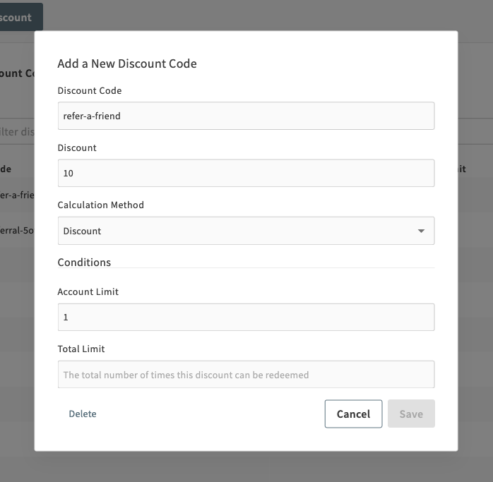 - Refer-a-friend system with discount codes offered to promote word-of-mouth referrals