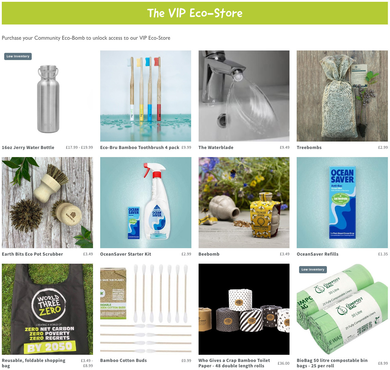 World Three Zero wished to provide a unique retail experience allowing customers who purchased the Community Eco Bomb to access a VIP store unavailable to the general public. This VIP store would allow for access to exclusive offers on refills & replacements on the 12 products available in the initial package.